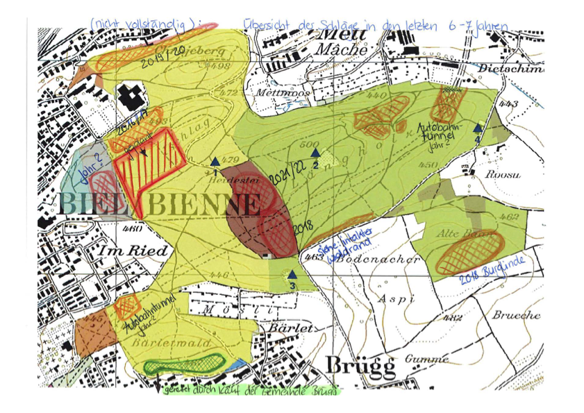 informel et hétérogène, constitué de personnes volontaires intéressées par ce qu’il se passe dans le Längholz. Les membres représentent différentes perspectives (climat, animaux, écosystème, économie forestière, industrie du bois, riverains, propriété forestière, écospiritualité, ville de Bienne, commune de Brugg, écoles et formation)